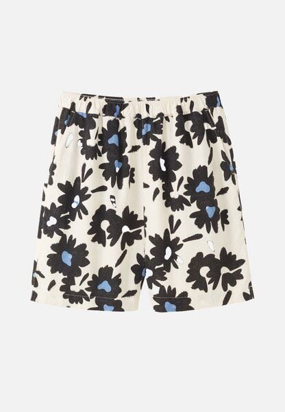 FIR BLOOM ist gemacht für den Sommer – luftig, leicht und auffällig. Der Allover-Print bringt sommerliche Energie, der Leinen-Mix sorgt für ein angenehmes Tragegefühl. Dank elastischem Bund sitzt die Shorts bequem auf der Hüfte, während die Eingrifftaschen den Look alltagstauglich machen. Kombinierbar mit Shirts, Tops oder Cropped Blusen. – Regular Fit Produktionsland: Türkei Zertifikate: PETA-Approved Vegan Material: 65% Viskose (LENZING ECOVERO), 35% Leinen