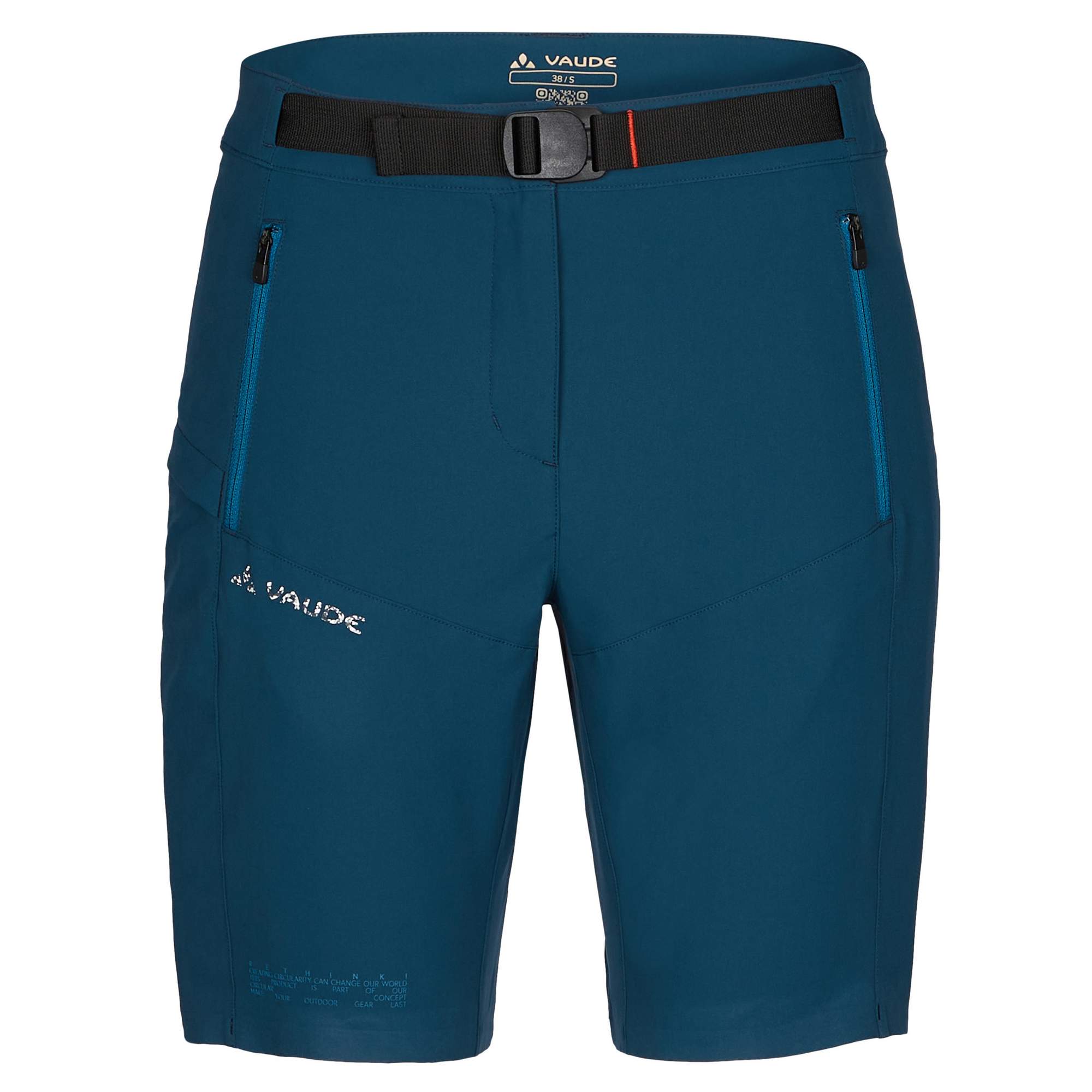 Bestandteil des Kreislaufs n Die leichten Elope Shorts gehören zu Vaudes Rethink!-Reihe und machen so dynamische Schritte Richtung Kreislaufwirtschaft, während du auf deiner Trekkingtour vorankommst. Neue Wege Als Teil des Kreislaufkonzepts bestehen die Shorts aus recyceltem Polyester. Da man sich auf einen Rohstoff beschränkt und andersartige Teile sich einfach entfernen lassen, erleichtert dies den Recyclingprozess am Lebensende der Hosen. Zudem wird auf robustes und somit langlebiges Material gesetzt, welches sich im Fall der Fälle leicht reparieren lässt. Durch effiziente Schnitte lassen sich Ressourcen sparen und Abfälle vermeiden. Elastisch und luftig Die kurzen Hosen bleiben auch bei ihren wasser- und schmutzabweisenden Fähigkeiten umweltbewusst und kommen dank Eco-Finish ohne PFC aus. Falls du also auf deinem Weg durch die Natur von leichtem Regen überrascht wirst, ist dies ebenso wenig ein Problem wie Schlammspritzer. Eine Extraportion Bewegungsfreiheit schenken dir das 4-Wege-Stretch-Material und die ergonomische Schnittführung. Die drei Taschen dienen dir nicht nur als Stauraum, sondern durch das Meshfutter auch als zusätzliche Luftzufuhr. Damit alles gut sitzt, ist der Bund mit einem integrierten Gürtel ausgestattet. Details Leichte Shorts aus recyceltem Material Teil der Rethink!-Reihe Wasser- und schmutzabweisend Elastisch Bund mit integriertem Gürtel 2 RV-Einschubtaschen 1 abgedeckte seitliche Einschubtasche Seitliche Schlitze an den Beinen Geklebter Saum an den Beinabschlüssen PFC-freie DWR-Imprägnierung Green Shape Produkt