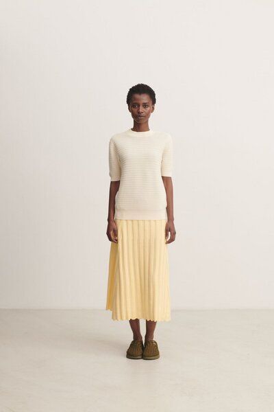 Dieses T-Shirt aus Bio-Baumwolle hat eine normale Passform. Es hat einen runden, doppellagigen Rundhalsausschnitt und gerippte Säume. Der Körper und die Ärmel sind in einer festen Rippstrickstruktur gestrickt. Dieses T-Shirt ist in einer unifarbenen und einer zweifarbigen Version in Melange erhältlich. Bio-Baumwolle wird aus nicht gentechnisch veränderten Pflanzen angebaut und geerntet, ohne den Einsatz von chemischen Düngemitteln und Pestiziden.