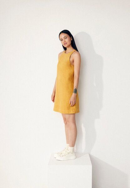 GBYuna ist ein ärmelloses Leinen Minikleid aus leichtem und luftigem Leinenstoff, mit gerader Silhouette, U-Boot-Ausschnitt und verdecktem Reißverschluss hinten. Dieses Kleid kannst du chick zu einem Sommerfest oder mit Flats im Alltag tragen. Das Leinen ist zertifiziert und wird aus den Niederlanden, Belgien oder Frankreich bezogen. Passform: Regular Ausschnitt: Rundhalsausschnitt Träger: Schmale Träger Länge: Mini Details: Verdeckter Reißverschluss Stoff: Leinen Fair hergestellt in Paredes, Portugal Qualität: 100% Leinen
