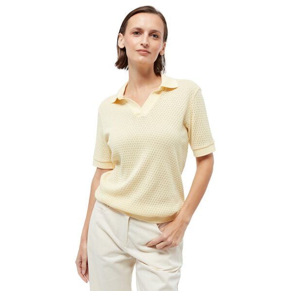 Modisches, lockeres Poloshirt für Damen aus strukturierter und nachhaltiger Bio-Baumwolle. Das Shirt verfügt über einen V-Ausschnitt mit lässigem Umlegekragen und kurzen Ärmeln mit schicken Ärmelabschlüssen. Das raffinierte Jacquard-Muster sorgt dafür, dass das Poloshirt angenehm luftig ist. Es lässt sich sowohl lässig-bequem zu einer Jeans als auch elegant zum Rock stylen und ist ein frischer Farbtupfer für deine Sommergarderobe! Die verwendete Baumwolle stammt aus kontrolliert biologischem Anbau und kommt ohne Pestizide, Insektizide oder Kunstdünger aus. Zudem wird kein gentechnisch verändertes Saatgut verwendet. Kleidung aus Bio-Baumwolle ist besonders hautfreundlich und tut dir sowie der Umwelt etwas Gutes. Material: 100% Baumwolle (bio, organic cotton) Made in: Türkei (Izmir) Zertifizierung: PETA approved vegan, GOTS (organic, CU 1094696)