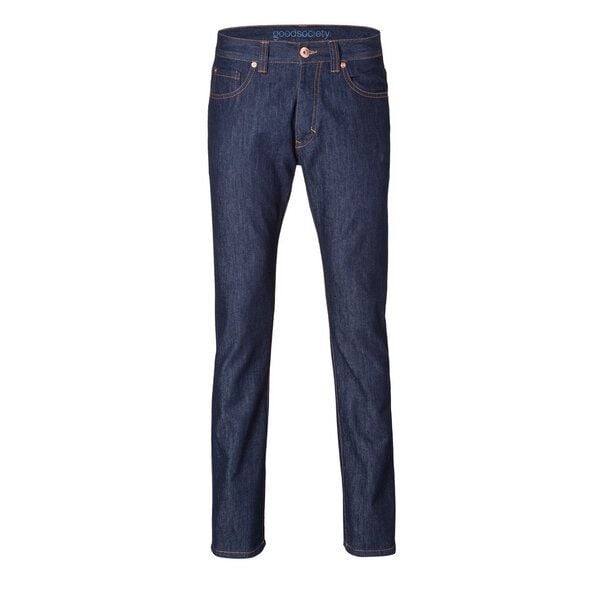 Achtung, die Jeans fällt eine Nummer kleiner aus, da in Italien anders gemessen wird. Bitte bestellen sie die Hose eine Nummer grösser als gewohnt falls sie noch keine goodsociety Jeans haben. Eine Passform mit normaler Taillenweite und geradem Bein. Ein blauer 12oz Denim, gefertigt in Italien aus feiner biologisch angebauter Baumwolle. Fest gewebt für eine dichte Oberfläche und schöne Haptik. Ein dry denim Look mit weichem Griff, durch einmaliges Waschen ohne Chemikalien. Eine intensiv blaue Denim-Färbung mit authentischem worn in Look und leichtem blau-weißem Kontrast. Für die Veredlung wird mit Laser und Ozon eine umweltfreundliche Behandlung angewendet, die fast die Hälfte des Wasserverbrauchs und mehr als ein Viertel des Energieeinsatzes einspart. Es werden keine schädlichen Chemikalien verwendet. Minimalistische, asymetrisch aufgesetzte Gesäßtaschen unterstreichen den klassisch authentischen Look. -Rotes Webkantenband und grauer, veganer Backpatch mit goodsociety Logo. Knöpfe und Nieten sind aus 90% recycelten Materialien gefertigt.