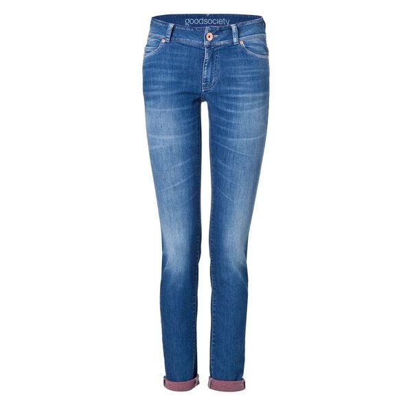 Achtung, die Jeans fällt eine Nummer kleiner aus, da in Italien anders gemessen wird. Bitte bestellen sie die Hose eine Nummer grösser als gewohnt falls sie noch keine goodsociety Jeans haben. Eine eng anliegende Passform mit normaler Taillenweite und schmalem Bein. Ein blauer 10,5oz Denim, gefertigt in Italien aus feinster biologisch angebauter Baumwolle. Fest gewebt mit hochwertigem Elasthan für eine dichte Oberfläche, höchste Bequemlichkeit und schöner Haptik. Eine hellblau-graue Denim-Behandlung mit leichtem blau-weißem Kontrast und rötlicher ausgewaschener Rückseite, die beim Umschlagen einen schönen Look macht. Für die Veredlung wird mit Laser und Ozon eine umweltfreundliche Behandlung angewendet, die fast die Hälfte des Wasserverbrauchs und mehr als ein Viertel des Energieeinsatzes einspart. Es werden keine schädlichen Chemikalien verwendet. Leicht geschwungene Gesäßtaschen unterstreichen den sportlich schönen Stil. -Rotes Webkantenband und grauer, veganer Backpatch mit goodsociety Logo. Knöpfe und Nieten sind aus 90% recycelten Materialien gefertigt.