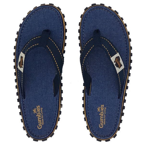 GUMBIES Dark Denim – 100% vegan. Mit deinen blauen Badesandalen hinterlässt du deinen Fußabdruck nur im Sand. Wir verwenden zur Herstellung der GUMBIES recyceltes Material: Der Fußriemen besteht aus recycelter Baumwolle und die Sohle aus recycelten Reifen. • Sohle besteht aus recyceltem Kautschuk • Besonders robuste Sohle für einen idealen Halt auf beinahe allen Untergründen • Fußriemen aus recycelter Baumwolle • Baumwoll-Zehensteg ist besonders weich und tragefreundlich • Ideales Tragegefühl durch das ergonomisch geformte Fußbett • Keine Verwendung von Polyester und Plastik Farbe: Dunkelblau / dunkelblauer Fußriemen GUMBIES sind da, um getragen zu werden. Mit deinen blauen Badesandalen kannst du den ganzen Tag rumlaufen. Die GUMBIES sind einfach nur super bequem und endlich hast du kein Scheuern mehr zwischen deinen Zehen. Deine Füße werden dich dafür lieben. Als die Idee der GUMBIES entstanden ist, war der Grundgedanke, einen nachhaltigen Sommer-Schuh zu entwickeln. Die Grundlage hinter den GUMBIES bildet dabei die markante Sohle, die aus recyceltem Kautschuk sowie Jute besteht und perfekten Halt auf allen Untergründen bietet. Die einzige Spur, die unsere GUMBIES in der Natur hinterlassen, ist ein nachhaltiger Fußabdruck beim Laufen durch den Sand.