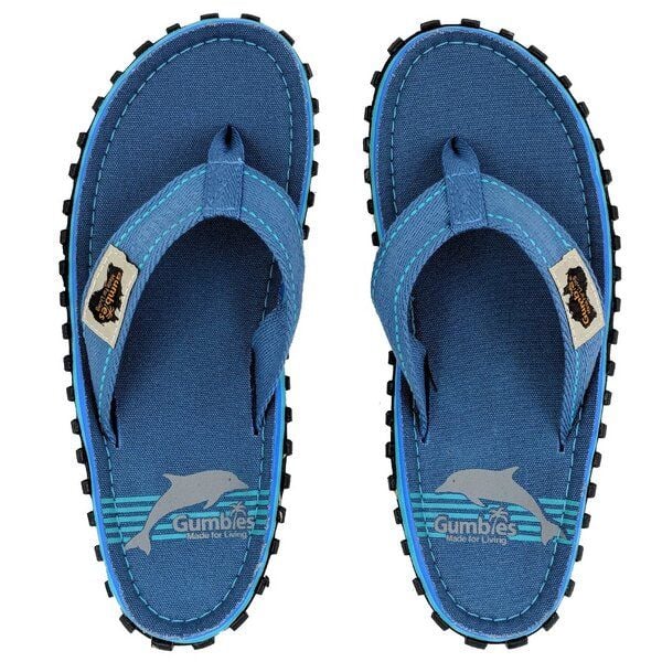 GUMBIES Pool – 100% vegan. Deine GUMBIES verzichten komplett auf tierische Produkte. Außerdem verwenden wir recyceltes Material für deine Zehentrenner: Der Fußriemen besteht aus recycelter Baumwolle und die Sohle ist aus recycelten Reifen hergestellt. • Sohle besteht aus recyceltem Kautschuk • Besonders robuste Sohle für einen idealen Halt auf beinahe allen Untergründen • Fußriemen aus recycelter Baumwolle • Baumwoll-Zehensteg ist besonders weich und tragefreundlich • Ideales Tragegefühl durch das ergonomisch geformte Fußbett • Keine Verwendung von Polyester und Plastik Farbe: Meeresblau / blauer Fußriemen GUMBIES sind dafür gemacht, den ganzen Tag getragen zu werden. Mit dem weichen Fußbett und dem super bequeme Fußriemen hast du ein unglaublich gutes Tragegefühl. Endlich kein Scheuern mehr zwischen deinen Zehen. Deine Füße werden dich dafür lieben. Als die Idee der GUMBIES entstanden ist, war der Grundgedanke, einen nachhaltigen Sommer-Schuh zu entwickeln. Die Grundlage hinter den GUMBIES bildet dabei die markante Sohle, die aus recyceltem Kautschuk sowie Jute besteht und perfekten Halt auf allen Untergründen bietet. Die einzige Spur, die unsere GUMBIES in der Natur hinterlassen, ist ein nachhaltiger Fußabdruck beim Laufen durch den Sand.