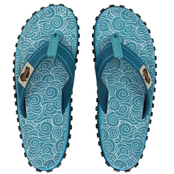 GUMBIES Swirls – Auf Autoreifen durch den Sommer. Genau: Autoreifen. Denn die Sohle der GUMBIES Zehentrenner besteht aus recycelten Autoreifen… und das erkennt man sofort an der markanten Sohle. Aber nicht nur die Sohle besteht aus recyceltem Material: Der Fußriemen besteht aus recycelter Baumwolle. Auch verzichten wir bei der Herstellung komplett auf tierische Inhaltsstoffe. • Sohle besteht aus recycelten Autoreifen • Besonders robuste Sohle für einen idealen Halt auf beinahe allen Untergründen • Fußriemen aus recycelter Baumwolle • Baumwoll-Zehensteg ist besonders weich und tragefreundlich • Ideales Tragegefühl durch das ergonomisch geformte Fußbett Einmal an deinen Füßen wirst du die türkisen Zehensandalen gar nicht mehr ausziehen wollen… und warum auch: Mit dem Zehentrenner aus Baumwolle hast du endlich kein Scheuern mehr zwischen deinen Zehen. Einfach reinschlüpfen, wohlfühlen und loslaufen: So geht Sommer.