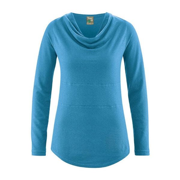 HempAge Damen Langarmshirt mit Wasserfallkragen Hanf/Biobaumwolle