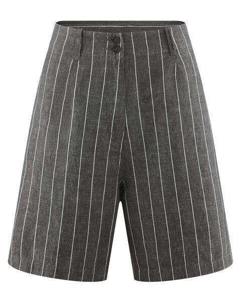 Viel mehr als nur herkömmliche Bermuda-Shorts, finden wir! Warum? Wegen des feinen Materials, das mit seinem hohen Hanfanteil besonders hochwertig ist und sich toll anfühlt. Und natürlich wegen der weit angelegten Nadelstreifen, die dir einen abgeklärt-klassischen Look verleihen. Verträgt sich auch gut mit Jersey-Tops in lauten, knalligen Unifarben. – Bermudas mit breiten Nadelstreifen – rückseitige Leistentaschen – Steinnussknöpfe