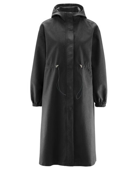 -weit geschnitten -Gewebe -seitliche Eingriffstaschen -verdeckte Knopfleiste mit nickelfreien Metalldruckknöpfen und Reißverschluss
