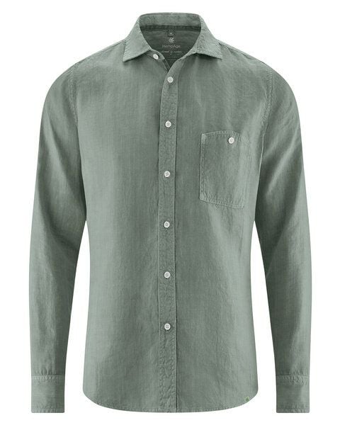 In diesem Hemd kommen die guten Eigenschaften von Hanf 100% zum Tragen. Nur reinste Fasern wurden hier zu einem schicken, körpernahen Hemd verarbeitet und besonders gefärbt: »Pigment Dye« lässt den Stoff lebendig changierend, leicht unregelmäßig und natürlich wirken. Durch die guten Eigenschaften von Hanf bleibt es stets angenehm auf der Haut und ist darüberhinaus temperaturausgleichend. So kommt man weniger ins Schwitzen und einem guten Auftritt für den ganzen Tag steht nichts im Wege. – Slim Fit – 100% Hanf – schmal geschnittenes Hemd – Zelluloseknöpfe Hanffasern sind die stabilsten Naturfasern. Außerdem ist die Hanffaser in der Lage Feuchtigkeit schnell aufzunehmen und auch schnell wieder abzugeben. Dies erzeugt ein kühlendes Tragegefühl, ideal für heiße Sommertage. Aber auch im Winter hält der Stoff angenehm warm. Zudem unterdrücken die Fasern die Entstehung von Gerüchen. Und dies ganz ohne chemische Behandlung.