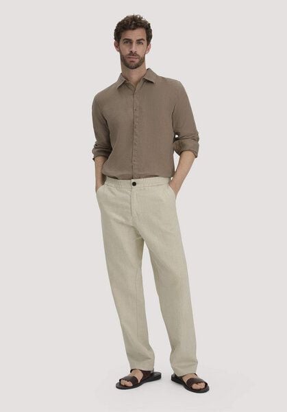 So sieht ein Essential mit Anspruch aus. Die Hose ENEA ist locker geschnitten und dank charakterstarkem Leinenanteil angenehm zu tragen. Lässig: der komfortable Elastikbund für einen sportlichen Look. Gerade Chino mit lässigem Elastik-Bund in vollwertiger Hosenverarbeitung Bequeme Seitentaschen und zwei Paspeltaschen auf der Rückseite Wertige Innenverarbeitung und doppelt abgesteppte Nähte für mehr Stabilität Regular: folgt der Körperform mit etwas Bewegungsspielraum Hautschmeichelnde Bio-Baumwolle mit Leinen für den charakteristischen Look und angenehmen Tragekomfort In Farbe natur (01): ungebleicht und ungefärbt – ideal für die empfindliche Haut OCS-zertifiziert