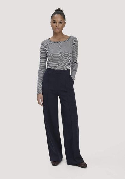Mit Schwung durch den Tag: mit der komfortablen Hose Wide Leg in lässiger Marlene-Passform. Schmeichelnd und bequem aus Punto di Roma Jersey. GOTS zertifiziert Punto di Roma Jersey-Hose in gerader Marlene-Silhouette Abgesteppte Biesen in der Mitte vorne und hinten So bequem: Die Flache Frontpartie, bequemer Bund mit Gummizug hinten Lässiger Relaxed Fit Punto di Roma-Jersey: elastisch und stabil. Aus Bio-Baumwoll-Anbauprojekt in Griechenland