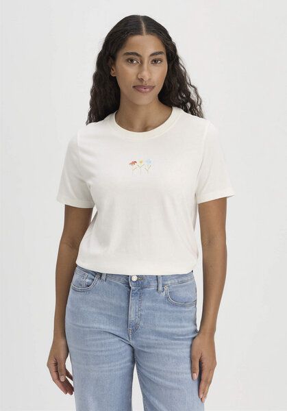 Zarte Blüte. T-Shirt mit feinem Natur-Statement auf der Brust. Jede Farbvariante zeigt eine eigene kleine Stickerei – natürlich, individuell, leicht zu kombinieren. Gefertigt aus Singlejersey: weich, glatt, angenehm auf der Haut. GOTS zertifiziert Rundhals-T-Shirt mit feiner Blumen-Stickerei Hautschmeichelnder Premium-Jersey: fein, glatt und formstabil Drei Farbvarianten, jede mit eigener Stickerei Relaxed: gerade geschnitten für entspannten Tragekomfort Beste Bio-Baumwolle – langlebig und weich verarbeitet