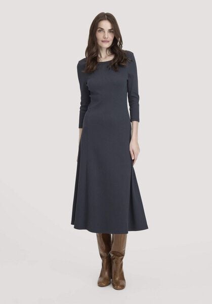 Klarer Kopf. Klare Kante. Cooles Kleid. Die cleane Silhouette, der locker ausgestellte Rock und das sanft anliegende Oberteil schaffen eine ausgewogene, feminine Form, die nicht eingengt und sich fließend mitbewegt. Dank der weichen, strukturierten Bio-Baumwolle ist ein Rundum-Wohlfühl-Gefühl garantiert. Ein Kleid das alles mitmacht, außer Fast Fashion. GOTS zertifiziert Einfarbiges Midi-Kleid in A-Shape, leicht ausgestellt Fein gerippt, 3/4-Ärmel und ein femininer Rundhalsausschnitt Die fließende Silhouette zaubert eine elegante Linie und lässt Bewegungsfreiheit Slim: am Körper anliegend Weicher Jersey aus Bio-Baumwolle mit einem Hauch Elasthan – anschmiegsam und gut zur Natur