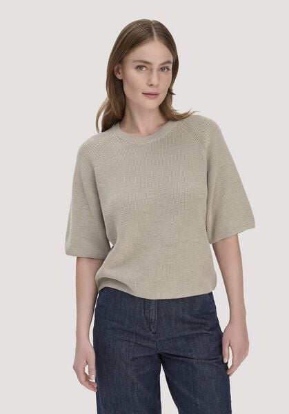 Zart. Skulptural. Zeitlos. Kurz und kastig, doch weich in der Bewegung: Der Halbarm und die sichtbar geminderten Raglanlinien dieses Shirts geben dem Feinstrick Ruhe, während Bio-Baumwolle mit Slub für eine lebendige, unregelmäßige Oberfläche sorgt. Luftig auf der Haut, klar in der Form — für Übergangstage, späte Nachmittage und Reisen, bei denen Komfort und Kontur gleichermaßen zählen. GOTS zertifiziert Kurzer Feinstrickpullover mit Halbarm – kastig und modern Rundhalsausschnitt, kurze Raglanärmel, feine Rippe am Hals, saubere Kanten Subtile Struktur, sommerleichter Griff: Slub-Garn mit lebendiger Oberfläche Relaxed: gerade geschnitten für entspannten Tragekomfort Beste Bio-Baumwolle – langlebig und weich verarbeitet