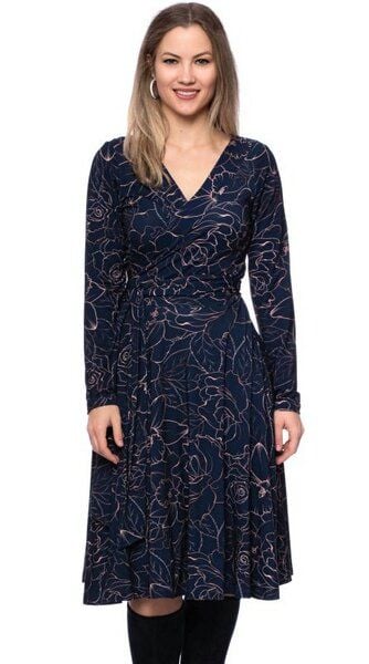 Das feminine Wickelkleid mit einem weit schwingenden Rock ist in dieser Saison einfach unverzichtbar! „AVA“ hat ein schmeichelhaftes Wickeldesign, wird mit einem Band in der Taille gebunden und zaubert so eine tolle Silhouette. Neben der tollen Trageeigenschaften kann das Kleid auch von beiden Seiten getragen werden. Durch einfaches Drehen erzielen Sie eine andere Optik. Im Büro genauso wie zu einem festlichen Anlass. Mit schmalen 3/4 Ärmeln (auf Wunsch auch mit kurzen oder langen Ärmeln). Das Kleid eignet sich auch super als Umstandskleid oder zum Stillen. Produktmerkmale: – 3 in 1 Wickelkleid für spezielle Anlässe – schließt mit Bindegürtel auf Taillenhöhe – Länge: Midi – Tellerrock – Transparenz: blickdicht – Fütterung: nein – Dehnbarkeit: elastisch – Stoff knittert nicht, die ideale Begleitung auf Reisen – 100% made in Germany (entworfen und hergestellt im Ingoria-Atelier) Erhältlich in Größe (XS) 34 bis XXL (44), Rückenlänge: ca. 110 cm in Größe M (kann je Größe variieren). Umweltfreundliches Material: 95% Modal, 5% Elasthan Waschbar bei 30°C. Bitte beachten Sie die individuellen Pflegehinweise im Artikel. Unsere Produkte werden mit viel Liebe in unserem Atelier nach Bestellung von Hand angefertigt. Jedes Kleidungsstück ist also ein kleines Einzelstück fernab der Massenproduktion. Beachten Sie daher bitte die oben angegebene Anfertigungs/Lieferzeit. Sollten Sie das Kleidungsstück zu einem ganz bestimmten Termin benötigen, können Sie uns gerne eine E-Mail mit einer Anfrage schicken. Wir werden dann Ihre Bestellung zu Ihren Wunschtermin anfertigen.