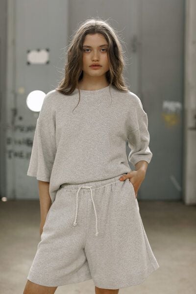 T-Shirt mit verlängerten weiten Ärmeln mit Rundhalsausschnitt aus Baumwolle, gerader Schnitt. Perfektes Basic Teil. Franzi ist 175 cm groß und trägt für gewöhnlich Größe S