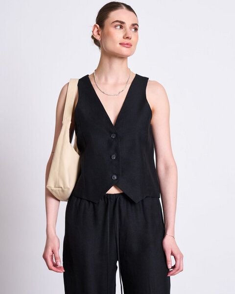 Diese hochwertige Weste HVIDE aus 100% europäischem Leinen bietet einen lässigen Schnitt für optimalen Tragekomfort. Mit ihrer leicht verkürzten Länge und der Knopfleiste ist sie vielseitig einsetzbar. Das Material besteht aus 100% europäischem Leinen und hat die tollen Eigenschaften von Leinen, wie z.B. einen festen Griff, aber dennoch einen hohen Tragekomfort und Luftdurchlässigkeit. Bitte beachte: Unsere Leinenartikel können an einigen Stellen leichte Verdickungen oder kleine Knoten aufweisen. Diese natürlichen Unregelmäßigkeiten sind keine Qualitätsmängel, sondern typische Merkmale der Leinenfasern und unterstreichen den authentischen Charakter des Materials.
