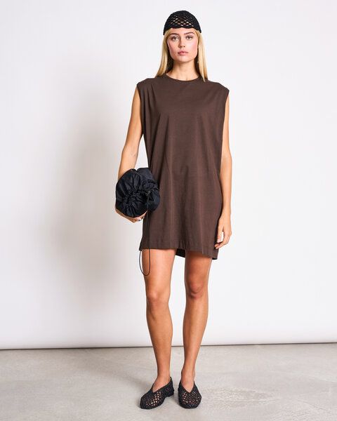 Das Kleid NANITI ist die kleine Schwester von unserem NANITA. Mit seinem sportlichen, weit geschnittenen Design und dem engen Rundhalsausschnitt bietet es Komfort und Stil zugleich. Die ärmellose Schnittführung sorgt für optimale Bewegungsfreiheit. Hergestellt aus 50% hochwertiger Bio Baumwolle und 50% recycelter Baumwolle, ist dieser Top leicht und luftig – ideal für die warmen Monate. Verleihen Sie Ihrer Garderobe mit NANITI einen frischen, sportlichen Look, der sich perfekt für jede Aktivität eignet.