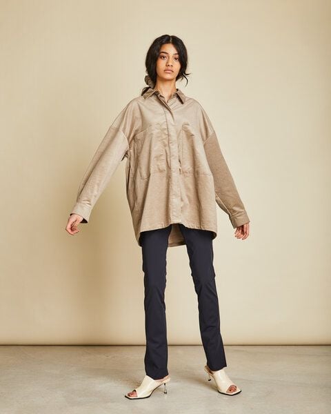 Das oversized Hemd UNA aus weichem Bio-Baumwoll-Kord sitzt sehr locker und kann als Hemd oder Jacke getragen werden. Details: – große, aufgesetzte Taschen – durchgehende, verdeckte Knopfleiste – Kragen & Manschetten – 98% Bio-Baumwolle 2%Elastan – Kord – Made in Poland
