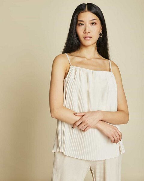 HAVE YOU MET HELEN? – locker fallend – aus recyceltem Polyester das aus alten Plastikflaschen hergestellt wurde – Spaghetti-Träger – Wasserfall-Ausschnitt – nachhaltig und fair hergestellt in Polen – Plissee – auch als Kleid erhältlich Absolutes Statementpiece!