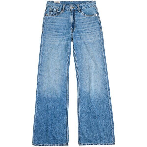 Klassische, nicht dehnbare Five-Pocket-Jeans für Damen aus einer Mischung aus Bio-Baumwolle und Leinen mit dezent ausgestelltem Bein von oben nach unten. Sie wird mit einem Reißverschluss geschlossen und der Knopfverschluss sowie alle Metallnieten und -knöpfe sind komplett recycelt. Die Jeans vereint den ikonischen Flare-Look der 70er mit einem modernen Touch. Diese Jeans wurde aus Bio-Baumwolle hergestellt, die bei der Herstellung weniger Wasser als herkömmliche Baumwolle verbraucht und noch dazu ist das Endprodukt frei von gefährlichen Chemikalien, die dir oder der Umwelt schaden könnten. Waschung: Hopcete Electric Mid (mittelblau) Material: 83% Baumwolle (bio, organic cotton), 17% Leinen Passform: Mid rise, Flare leg, Rigid Made in: Türkei