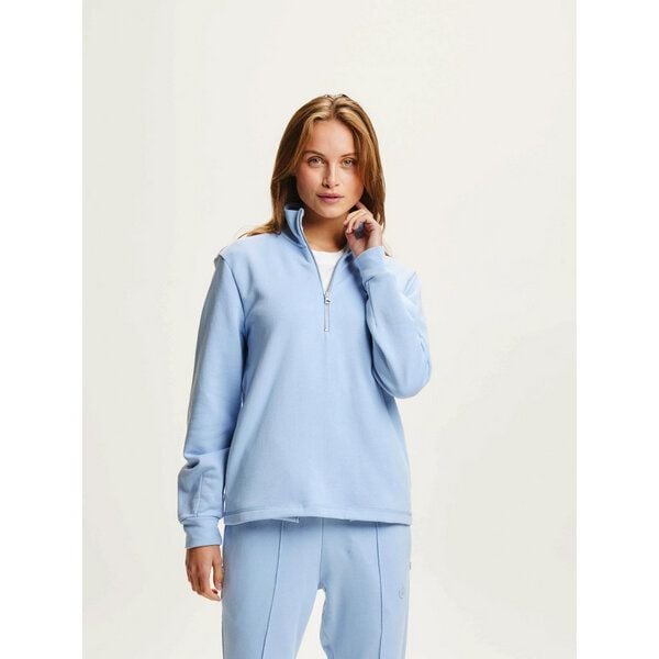 KnowledgeCotton Apparel Damen Sweatshirt mit Stehkragen und Zipper HIGH NECK SWEAT aus Biobaumwolle – Chambray Blue, GOTS zertifiziert