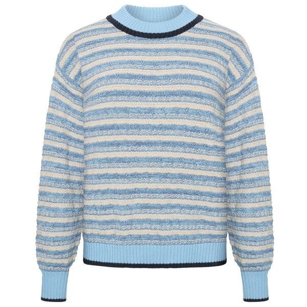 Schicker Strickpullover für Damen aus Bio-Baumwolle mit gestricktem Rundhalsausschnitt und entspannter Passform. Zudem verfügt der Pullover über weiche Ärmel- und Saumbündchen mit kontrastfarbigen, hellblauem Rippenmuster. Hält dich im Winter angenehm warm und ist auch noch wunderbar vielseitig kombinierbar. Er wurde aus ökologischer Baumwolle und unter fairen Arbeitsbedingungen gefertigt, damit die Natur und die Menschen, die dieses Stück produzierten den Respekt erfahren, den sie verdienen. Der Bio-Anbau hilft Treibhausgasemissionen zu verringern und da auf chemische Entlaubungs-, Pestizid- und Düngemittel verzichtet wird, ist sie besser zu deiner Haut als konventionelle Baumwolle. Auch die verwendete Farbe ist toxikologisch überprüft, um sicherzustellen, dass sie niemanden schadet. Die Produktion erfolgte unter fairen Arbeitsbedingungen in Indien, damit du den hohen Tragekomfort und die langlebige Qualität mit gutem Gewissen genießen kannst. Material: 100% Baumwolle (bio, organic cotton) Made in: Indien Zertifizierung: GOTS (organic, CU-847594), PETA approved vegan