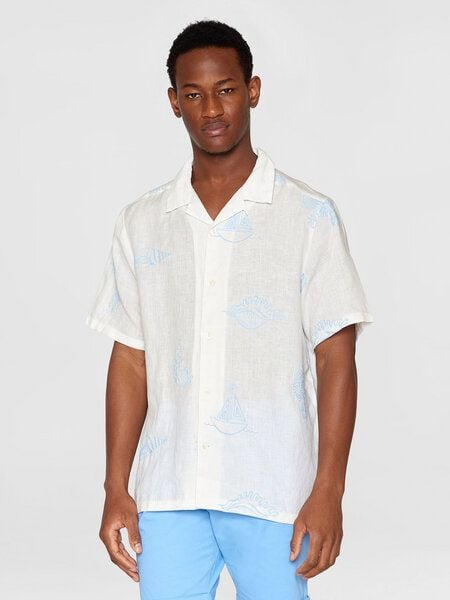 KnowledgeCotton Apparel Hemd – Embroidery Box Fit short sleeve – aus Leinen (bio)