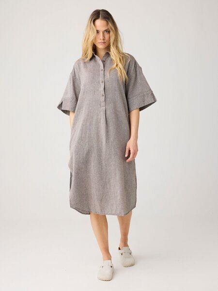 Kurzarm-Blusenkleid mit Struktur aus Bio-Baumwolle Das Struktur Hemdkleid ist der perfekte Begleiter für jeden Anlass. Mit seinem modernen Design und hochwertigen Materialien hebt es sich von der Masse ab. **Besonderes:** – GOTS label grade 1/Vegan PETA – Material: 100% Baumwolle
