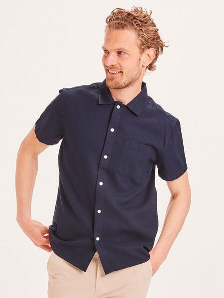 Das Kurzarmhemd ‚Larch Waffle SS Shirt‘ ist das luftig-leichte Hemd für den Sommer. Das dänische Label Knowledge Cotton Apparel setzt hier auf Bio-Baumwolle und eine angenehme Waffelstruktur im Stoff. Darum lieben wir das Bio-Hemd von Knowledge Cotton Apparel: Cooles Kurzarmhemd im Regular-Fit Schick in Dunkelblau Fair in Indien hergestellt