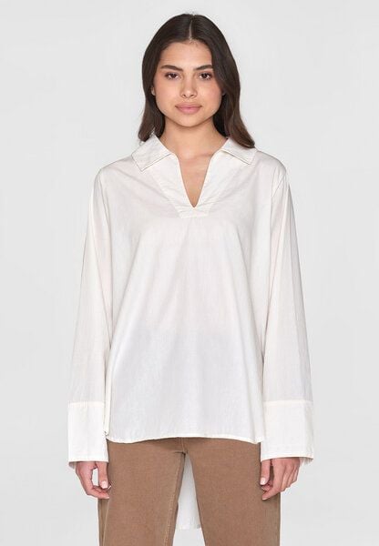Dies ist ein großartiges Basic für deine Garderobe, das auch eine bewusste Wahl ist. Dieses Chambray-Shirt aus 100 % Bio-Baumwolle ist weich und angenehm zu tragen. Das locker sitzende, A-förmige Shirt hat lange Ärmel, einen offenen V-Ausschnitt und einen längeren hinteren Saum. Certified by Control Union license no.: 847594