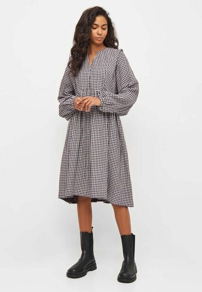 KnowledgeCotton Apparel Small Check A-Shape Midi Dress – aus Bio-Baumwollmix
