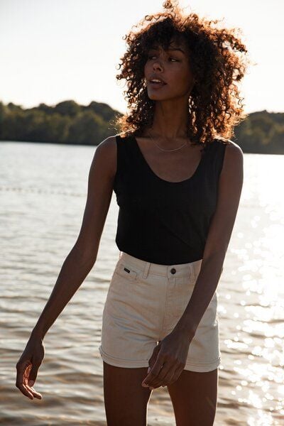 Demi ist Kuyichi’s klassische Denim-Short. Diese Short hat eine hohe Taille und kann mit oder ohne umgeschlagenen Saum getragen werden. Details: – High Waist – veganes Logopatch aus Jacron – Ziernähte – seitliche Eingrifftaschen – aufgesetzte Gesäßtaschen – Gürtelschlaufen – Reißverschluss und Knopf Material: – 100% Bio-Baumwolle Enjoy your pure goods!