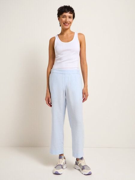 Leichte, fließende Hose in 7/8-Länge aus französischem Leinen mit weitem Bein und mittelhohem, elastischem Bund ohne Reißverschluss und Knöpfe. Leinen als natürliches Material ist temperaturausgleichend, kühlend und langlebig. Die Hose hat außerdem zwei seitliche Eingrifftaschen. Ton-in-Ton ein perfektes Match zu unserer Weste oder Hemdbluse.