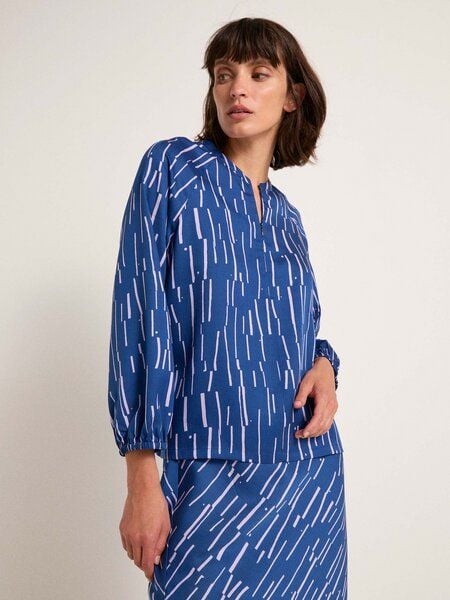 Luftig-zarte, leichte Bluse mit langen Ärmeln, einem gerundeten, verlängerten Rücken und Rundhalsausschnitt. Die lockere Passform verleiht der Bluse eine schöne Lässigkeit. Der leicht glänzende und blickdichte Stoff aus TENCEL Lyocell sorgt im Handumdrehen für einen edlen Look. Der Print strahlt Lebendigkeit aus. An kalten Tagen kann ein Top oder Langarmshirt ganz einfach dazu kombiniert werden.