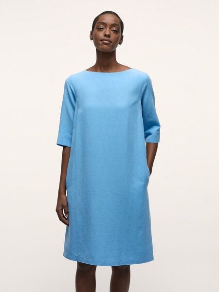 LANIUS Klassiker: Das Etuikleid, fair produziert und vegan, weich fließend in perfektionierter Passform. Der leichte Glanz der Faser unterstreicht den edlen Look des femininen Kleides. Die verbesserte Materialmischung aus Lyocell (TENCEL) und Leinen ist blickdicht, anschmiegsam sowie formbeständig. Femininer U-Boot-Ausschnitt, halblanger Arm und eine leicht ausgestellte Rockpartie sowie lässige Einschubtaschen machen das Kleid zu einem unserer langjährigen Bestseller.