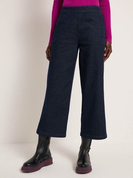 Hochwertige Culotte aus italienischem Candiani-Denim: Die bewehrte Qualität aus Bio-Baumwolle mit leichtem Stretch sorgt für ein wunderbar angenehmes Tragegefühl. Der mittelhohe Bund, das gerade, weite Bein und die Eingrifftaschen bieten zudem eine entspannte, formbeständige Passform. Die Jeans Culotte wirkt modisch zu körpernahen Tops und Sneakern, oder leger-chic zur sommerlichen Bluse mit Pantoletten.