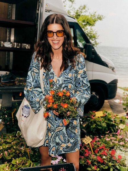 Entdecke die limitierte LANIUS x MARIE NASEMANN „Lago di Garda Edizione“, inspiriert von der Leichtigkeit eines Sommers am Gardasee. Dieses Kleid aus 100 % GOTS-zertifiziertem Bio-Leinen verbindet natürliche Frische mit einem ausdrucksstarken Design. Der lebendige Light Linen Print greift mediterrane Einflüsse auf und verleiht dem Look eine besondere sommerliche Ausstrahlung. Die atmungsaktive Leinenqualität fühlt sich angenehm auf der Haut an und ist ideal für warme Temperaturen. Der lockere Schnitt sorgt für Bewegungsfreiheit und eine entspannte Silhouette, während der feminine V-Ausschnitt und die 3/4-Ärmel dem Design eine elegante, zugleich lässige Note geben. Ob im Alltag, im Urlaub oder für sommerliche City-Looks – dieses Kleid lässt sich vielseitig kombinieren und bringt unkomplizierte Leichtigkeit in jede Garderobe. 100% GOTS zertifiziert – CERES 0324