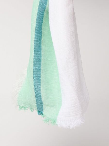 Sommerlicher Schal aus natürlicher Bio-Baumwolle und Leinen. Angenehm leicht und lang lässt sich der weiche Schal mit breitem Kontaststreifen in sommerlichen Farbtönen vielseitig einsetzten und variabel stylen. Er ist der perfekte Begleiter für Frühlingstage oder kühlere Sommerabende.
