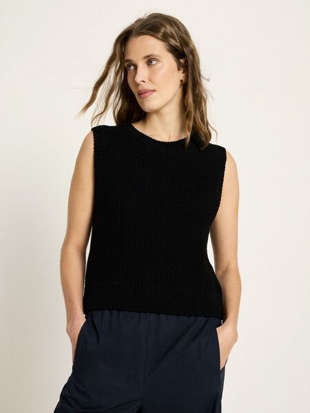 Vielseitig kombinierbar und modern interpretiert: Dieser Bouclé-Pullunder bringt mit seiner fein strukturierten Oberfläche Tiefe in jeden Look. Die charakteristische Bouclé-Optik verleiht dem Design eine hochwertige Anmutung und setzt spannende Kontraste zu glatten Materialien. Der Materialmix aus Bio-Baumwolle und recyceltem Polyester fühlt sich angenehm weich an und sorgt zugleich für Formstabilität – ideal für zeitlose Layering-Styles mit besonderem Detail. 100% GOTS zertifiziert CERES 0324