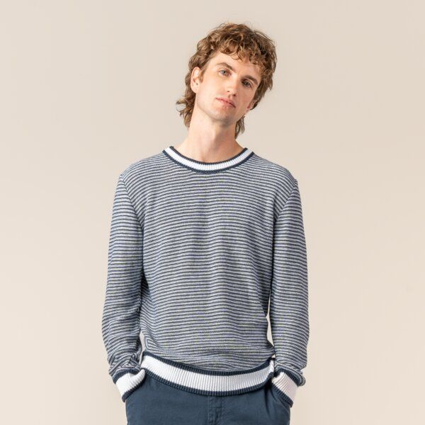 Ganz viel Abwechslung, in ein und demselben Kleidungsstück. Mit feinen Ringeln, mit kontrastierenden Bündchen, und abgesetztem Halsausschnitt. Damit der Pulli zu allem und ganz vielem passt. Und die Sommer-Outfits niemals langweilig werden. • GOTS-zertifiziert Organic nach CU816552 • Leichter Sommerpullover aus angenehmem Materialmix • Bund, Bündchen und Halsausschnitt aus farblich abgesetztem, breiten Rippstrick • Französischer Schulterschnitt mit nach hinten verlegter Naht Nachhaltige und fair gehandelte Öko-Kleidung und Heimtextilien für die ganze Familie – dafür steht LIVING CRAFTS. Seit 1985 haben wir uns auf die Herstellung von nachhaltiger Bio-Babykleidung, Kinderkleidung, Unterwäsche und ökologischer Funktionswäsche spezialisiert. Im Sortiment finden auch Allergiker ungebleichte und ungefärbte Wäsche für ein angenehmes Hautgefühl. Bei all der Nachhaltigkeit kommen die aktuellen Trends der Saison nicht zu kurz! Neben zeitlosen Heimtextilien und Bio-Mode präsentieren wir saisonale Kollektionen, die aktuelle Styles aufgreifen und in den Trendfarben der Saison kommen. Entdecken Sie die Styles und tragen Sie nachhaltige Trends mit LIVING CRAFTS!