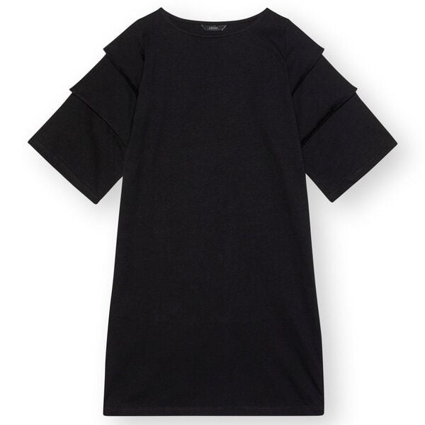 Hübsches Mini-Kleid aus feinster Jersey aus Bio-Baumwolle. Das Kleid verfügt über eine weite Passform, einen Rundhalsausschnitt und halblange Rüschenärmel, die ihm eine verspielte sowie feminine Note verleihen. Perfekt für formelle Anlässe, aber auch einen angenehmen Abend in der Stadt. Dank der PETA approved vegan Zertifizierung ist außerdem garantiert, dass in keinem Produktionsschritt ein Tier zu Schaden gekommen ist. Material: 100% Baumwolle (bio, organic cotton Zertifizierung: PETA approved vegan
