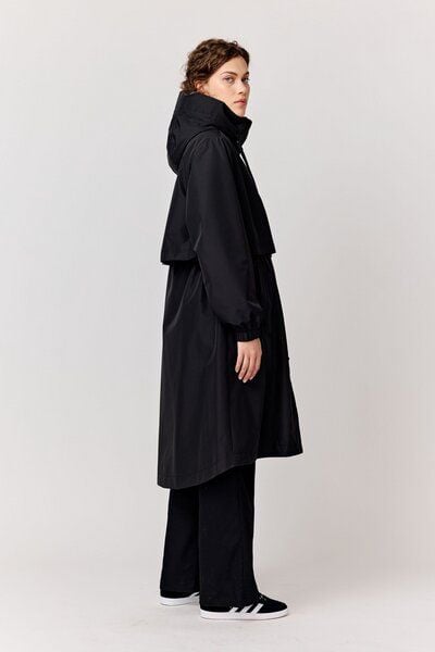 Ein längerer, locker geschnittener Mantel, der einen klassischen Outdoor-Look mit moderner Funktionalität verbindet. Mit einer Wassersäule von 5000 mm schützt er zuverlässig bei einsetzendem Regen. Dank des verdeckten Taillenverstellers lässt sich die Passform bei Bedarf individuell anpassen.Der Inga-Mantel hat eine lockere Passform und fällt eher groß aus – wir empfehlen, eine Nummer kleiner als üblich zu bestellen.