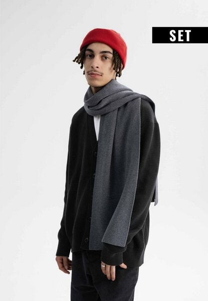 Im Bundle: Feinstrickmütze HIMMAT und Jacquard Schal ASMEE. Himmat ist eine weiche Feinstrick-Mütze mit normaler Passform, doppellagig gearbeitet und mit variablem Umschlag – für optimalen Sitz und wärmenden Komfort an kühlen Tagen. Ihr zeitloses Design macht sie zum vielseitigen Begleiter im Alltag. Der Schal ist aus weichem Jacquard-Strick gefertigt und überzeugt mit angenehmem Tragekomfort an kühlen Tagen. Sein zeitloses Design macht ihn zum vielseitigen Begleiter im Alltag.