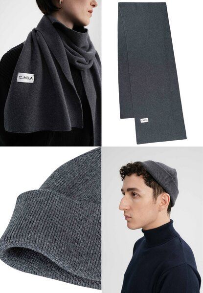 MELA Bundle Feinstrick Mütze kurz LESH + Jacquard Schal ASMEE