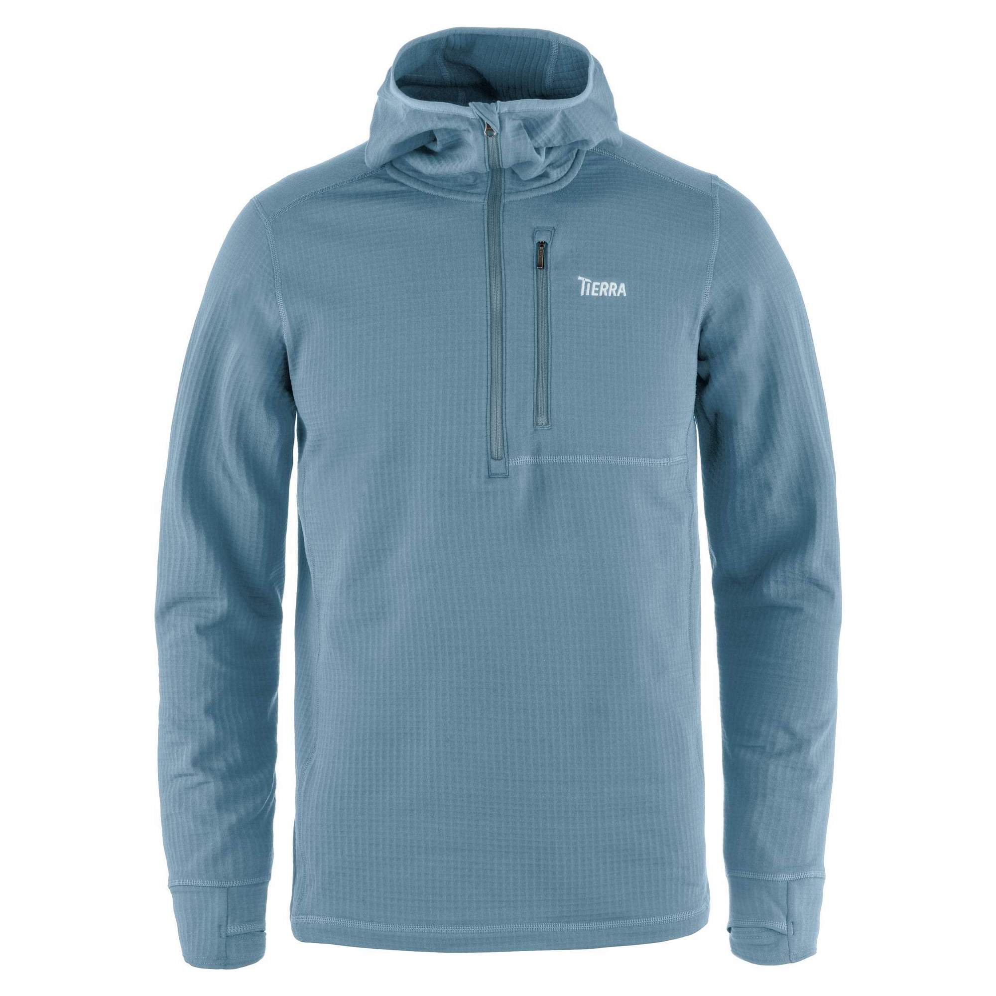 Midlayer mit weichem, leichtem Stretchfleece Dieser vielseitig einsetzbare Fleecepullover mit kurzem RV unterstützt dank seines tollen Feuchtigkeitsmanagements ein ausgewogenes Körperklima, selbst wenn du richtig ins Schwitzen kommst. Zu allen Outdoor-Abenteuern bereit Um den Berg Nallo in Schwedisch Lappland zu besteigen, gilt es, felsiges, raues Terrain zu überwinden. Kein Wunder also, dass die Tierra Nallo-Serie höchste Ansprüche erfüllt und nicht nur beim Bergwandern glänzt. Auch bei Winteraktivitäten wie z.B. Backcountry-Skitouring, beim Trekking oder Klettern kannst du die bequemen Teile aus hochwertigem Fleece einsetzen – sei es zum schnellen Überziehen übers T-Shirt oder als mittlere Bekleidungsschicht zwischen Unterwäsche und Wetterschutzjacke. Effektives Feuchtigkeitsmanagement Dabei überzeugt das technische Stretchfleece mit einer hervorragenden Wärmeleistung bei geringem Gewicht. Die innenliegende Waffelstruktur isoliert deine Körperwärme effektiv und fühlt sich dabei schön weich auf der Haut an. Schweiß wird schnell nach außen abgeleitet, während das Material rasch wieder trocknet. Die Außenseite ist glatt beschaffen. So hält sie Belastungen durch den Rucksack oder Felskontakt besser stand. Dank Stretch genießt du jederzeit volle Bewegungsfreiheit sowie einen tollen Sitz. Nachhaltig! Ein Pluspunkt für die Umwelt: Bei der Nallo-Serie kommt ein bluesign-zertifiziertes Gewebe zum Einsatz, das darüber hinaus auch das GRS Siegel trägt. Das bedeutet, dass hier ressourcenschonende Prozesse und garantiert recycelte Materialien zum Einsatz kommen. Auch auf die Reduktion von Chemikalien und Emissionen wird streng geachtet. Kompromisslose Details Eine minimalistische Ausstattung zeichnet den Nallo Hood Half Zip M aus. Die enganliegende Kapuze passt gut unter einen Helm, spendet deinem Kopf leichte Wärme und macht dabei jede Bewegung mit. Die Daumenschlaufen verhindern das Hochrutschen der Ärmel. Um Energieriegel, Schlüssel oder Handy griffbereit zu haben, hast du zwei Reißverschlusstaschen zur Verfügung. Details Technischer Stretchfleece-Pullover aus recyceltem Polyester GRS (Global Recycled Standard) und bluesign-zertifiziertes Material Stretchfleece mit Waffelstruktur Atmungsaktiv, leicht und wärmend Kurzer Front-RV Enganliegende Kapuze Flache Nähte 2 RV-Fronttaschen (mit Mesh hinterlegt) Daumenschlaufen