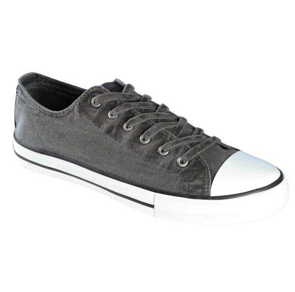 Klassische Retro Sneaker- fair produziert und umweltfreundlich! + Obermaterial und Innenmaterial aus Baumwolle aus kontrolliert ökologischen Anbau + Gummisohle aus Naturlatex + Herausnehmbare Einlegesohlen + washed Optic durch Enzymwaschung + vegan (PETA approved) + Made in Spain Die Schuhe haben einen natürlichen pflanzlichen Geruch nach Erdbeere. Dieses pflanzliche Parfüm wird schon bei der Herstellung mit in die Sohle gegossen und lässt daher auch nicht nach. Es hilft z. B. auch beim Barfuß Tragen gegen Gerüche.