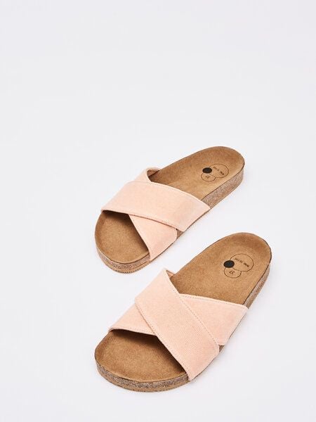 NINE TO FIVE #clota – bequeme Pantolette aus recyceltem Canvas mit Naturlatex-Fussbett und Kork
