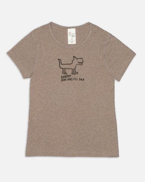 Nudie Jeans Damen T-Shirt Eve Scratchy Dog aus Bio Baumwolle, Beige Melange